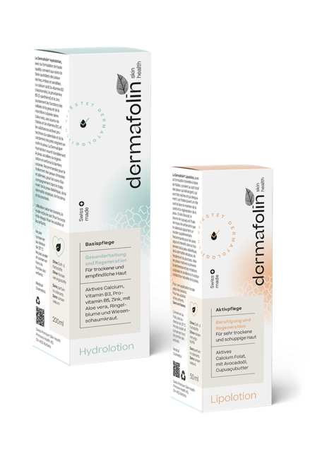 Dermafolin® ist eine Hautpflegeserie zur lokalen und schnellen Anreicherung bioaktiver Folate und weiteren wichtigen Vitalstoffen, zur täglichen Anwendung an empfindlichen oder trockenen Hautpartien oder als Begleitbehandlung in der Hauttherapie.